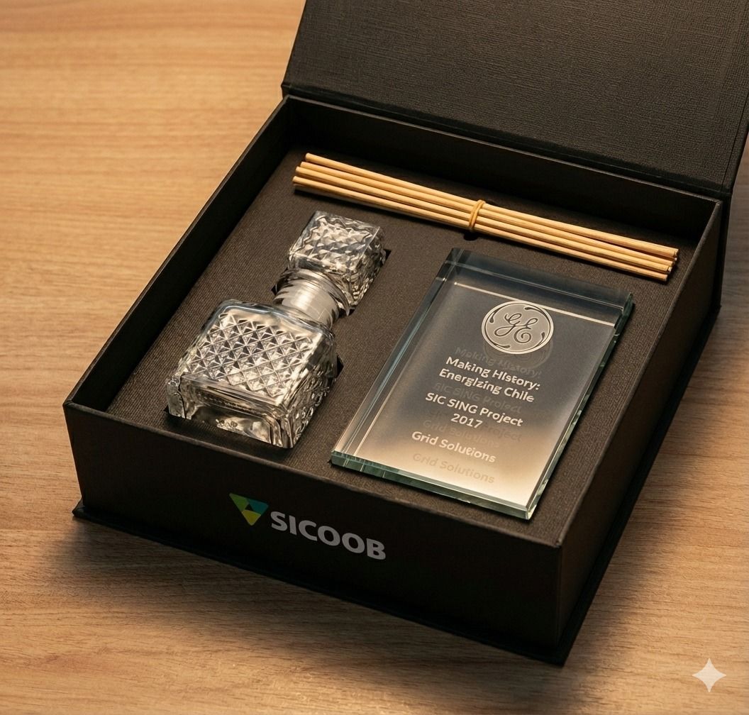 Cada detalhe é pensado para reforçar o posicionamento da sua empresa, criar expectativa e elevar o valor percebido do presente antes mesmo do aroma ser sentido.